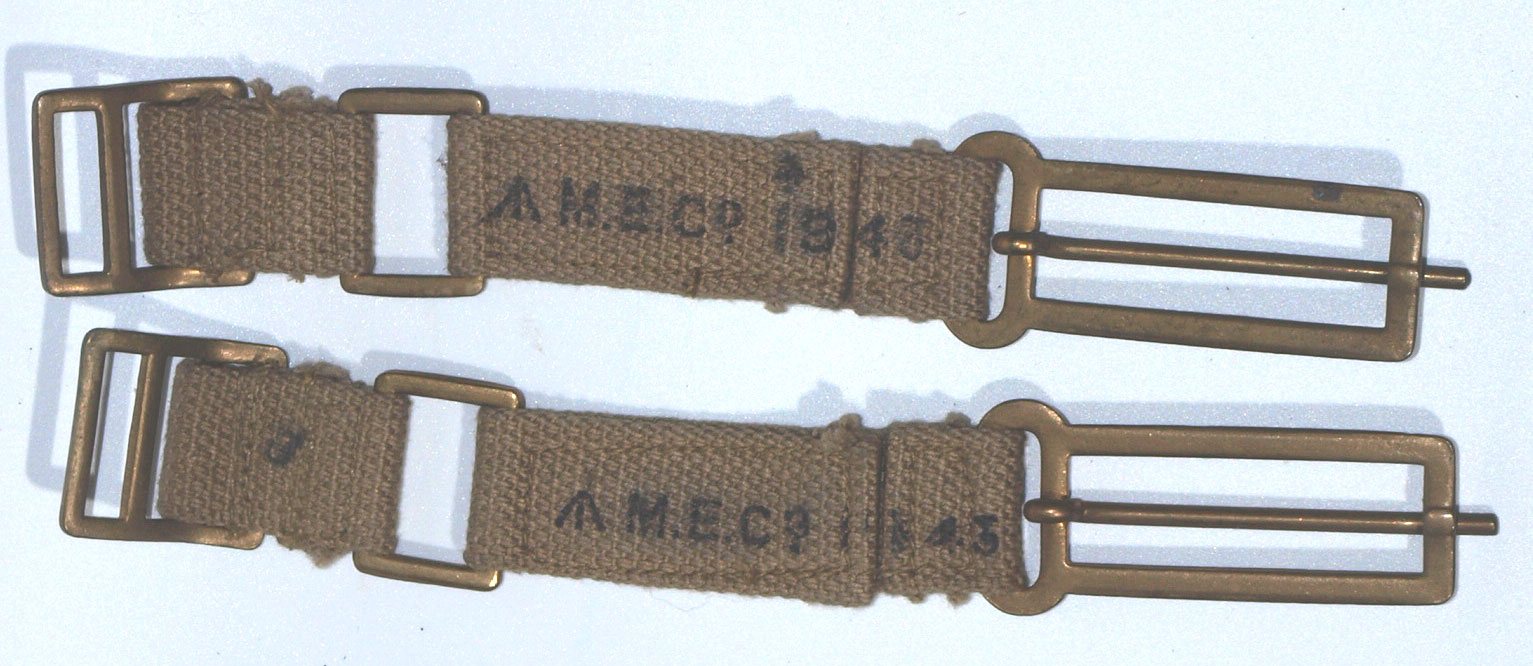 Unissued condition brace attachments, these were used by officers, Military Police and Corps troops such as tank crews. Genuine items, various WW2 dates and makers. Photo shows set for identification, may need polishing to remove quite heavy Verdigris