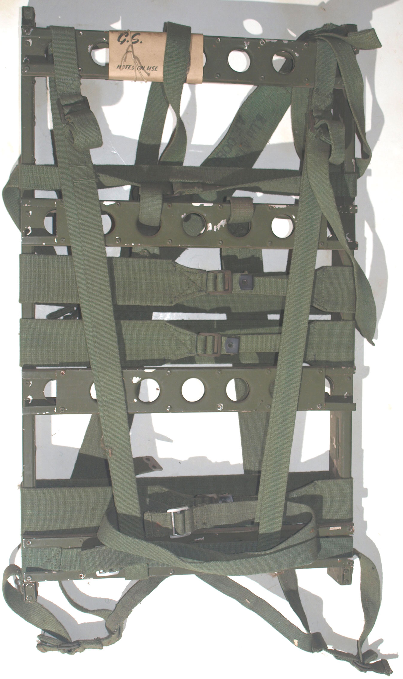44 Pattern manpack carrier, unissued/unused condition, small odd areas of paint missing from storage, instruction card still attaached.