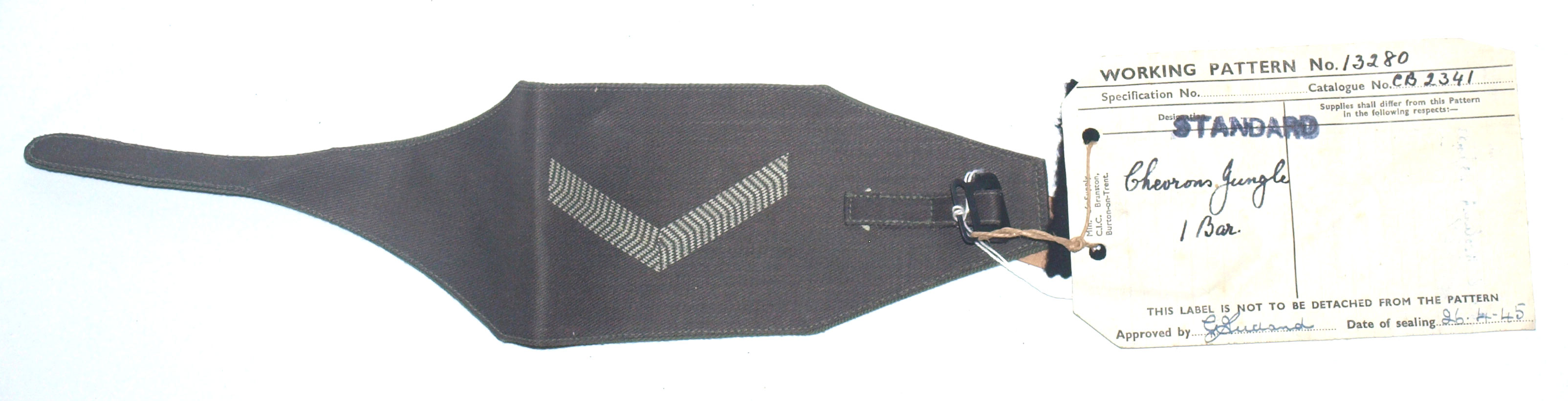 Rare sealed pattern of the single Chevron jungle armband, the label dated 1945, in as new condition, photo shows actual item.
