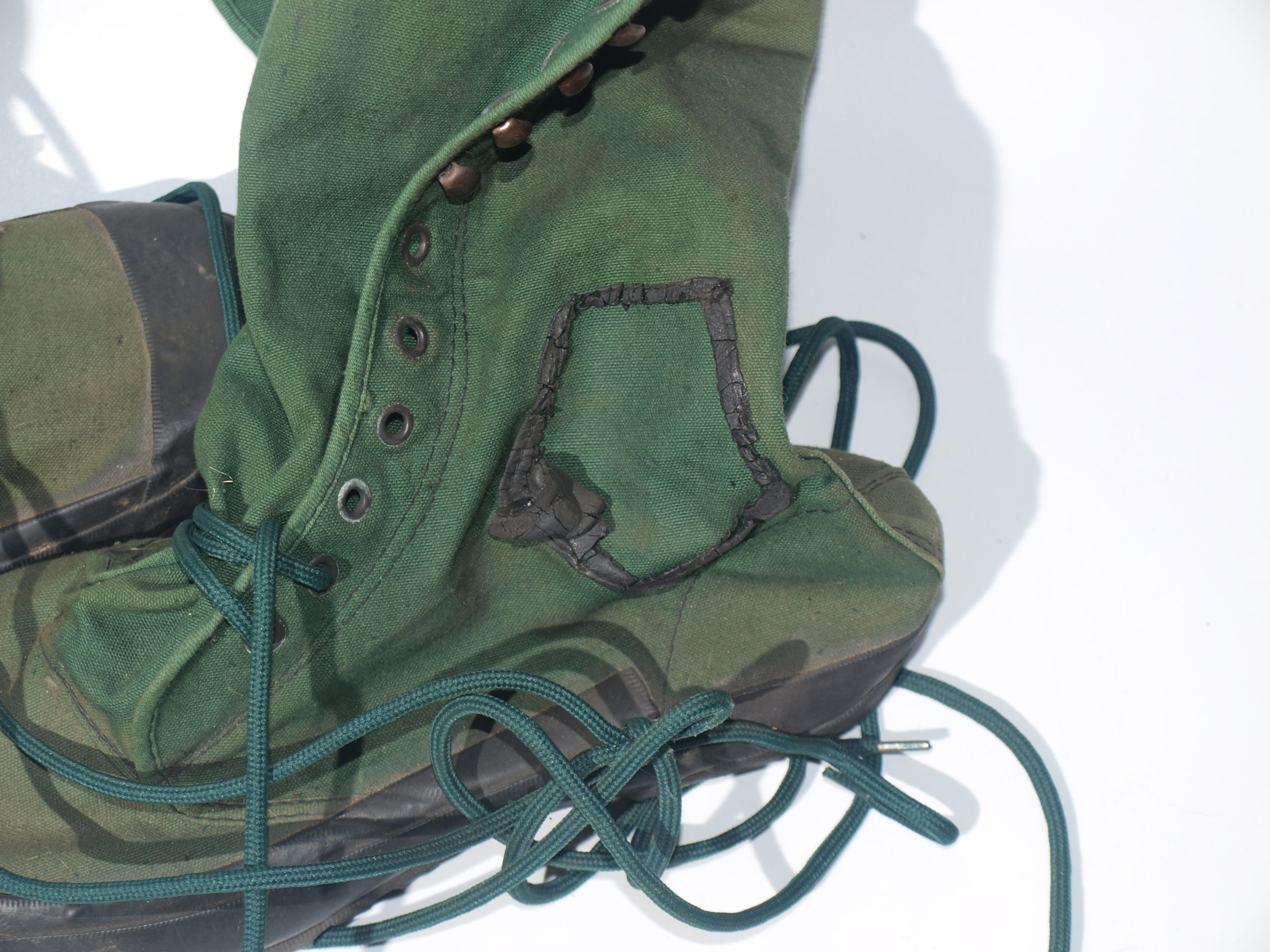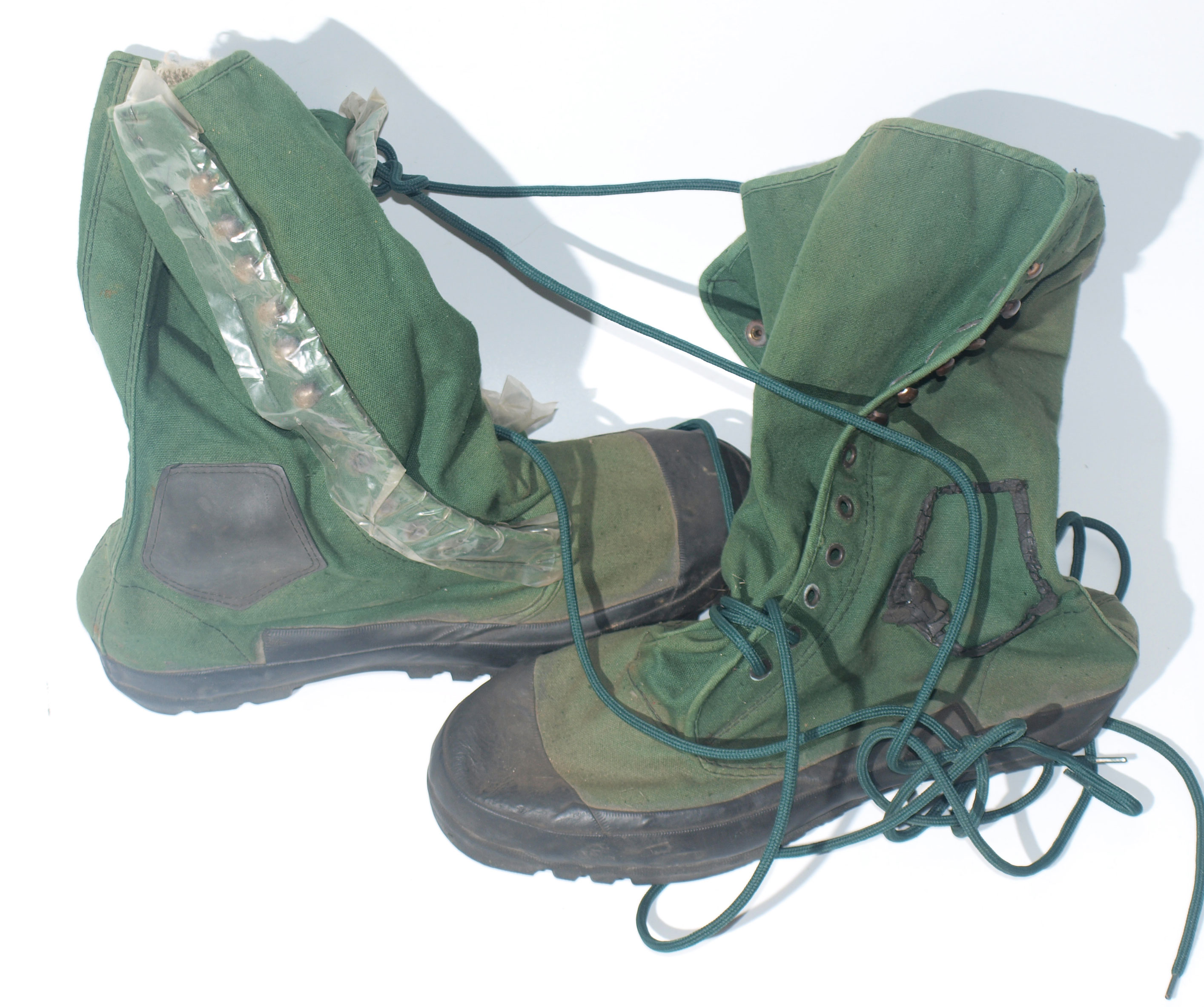 Jungle canvas and rubber boots with wool KD socks which have clearly been worn with jungle boots as the foot is re-coloured green.
