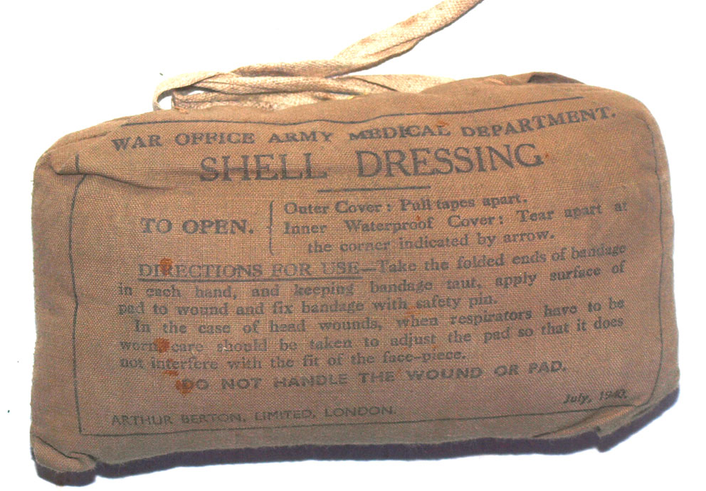 This dressing was designed to be used immediately after injury, the outer contained a large bandage and cotton wool pad which were more suitable for the larger injuries caused by modern munitions than the First Field Dressing.